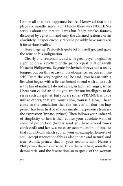 Nastasia Philipovna. Evgenie Pavlovitch always had a ready