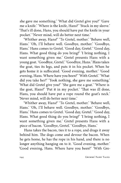 ‘Whither away, Hans?’ ‘To Gretel, mother.’ ‘Behave well,