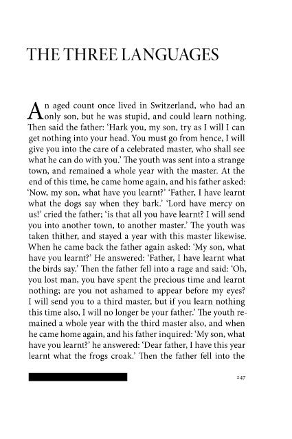 the birds say.’ Then the father fell into a rage and said: ‘Oh,