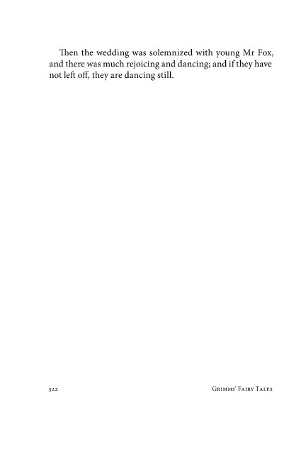 Then the wedding was solemnized with young Mr Fox, and there was much rejoicing and dancing; and if they have not left off, they are dancing still. Grimms’ Fairy Tales