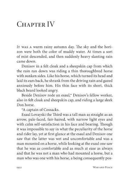 Beside Denisov rode an esaul,* Denisov’s fellow worker,