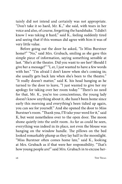 home?” “No,” said Mrs. Grubach, smiling as she gave this