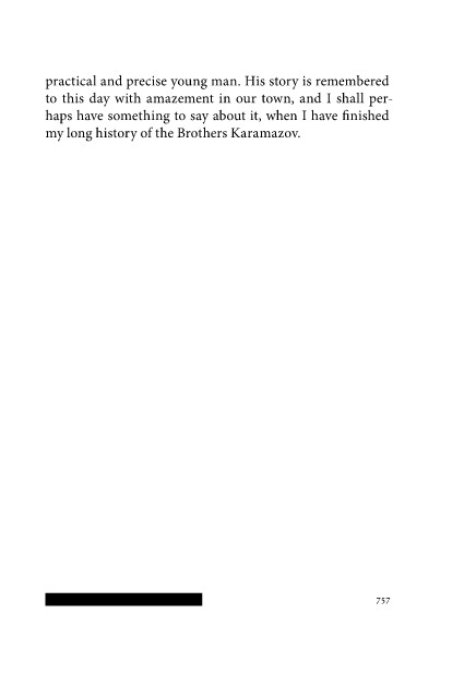 practical and precise young man. His story is remembered to this day with amazement in our town, and I shall per- haps have something to say about it, when I have finished my long history of the Brothers Karamazov.