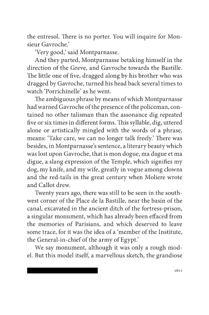 was lost upon Gavroche, that is mon dogue, ma dague et ma