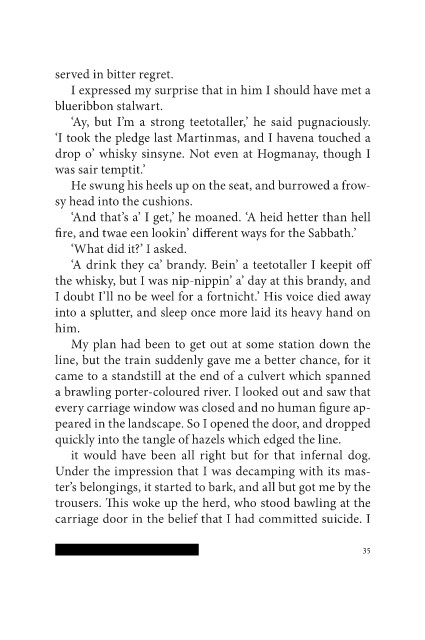 ‘A drink they ca’ brandy. Bein’ a teetotaller I keepit off