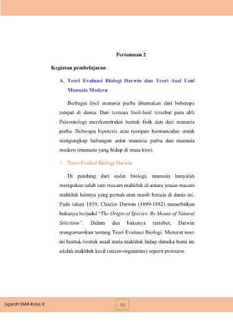 A. Teori Evaluasi Biologi Darwin dan Teori Asal Usul
