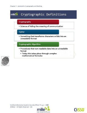 Chapter 7 – Symmetric Cryptography and Hashing Certified Information Systems Security Officer P a g e | 328 ©Mile2 – All Rights Reserved - v18