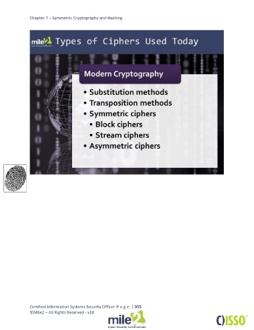Chapter 7 – Symmetric Cryptography and Hashing Certified Information Systems Security Officer P a g e | 355 ©Mile2 – All Rights Reserved - v18