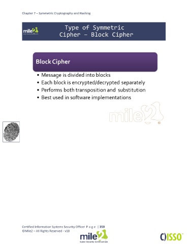 Chapter 7 – Symmetric Cryptography and Hashing Certified Information Systems Security Officer P a g e | 359 ©Mile2 – All Rights Reserved - v18