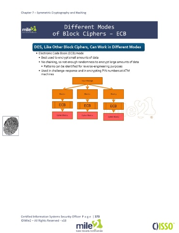 Chapter 7 – Symmetric Cryptography and Hashing Certified Information Systems Security Officer P a g e | 370 ©Mile2 – All Rights Reserved - v18
