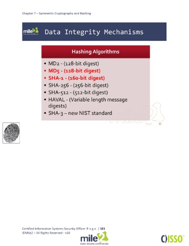 Chapter 7 – Symmetric Cryptography and Hashing Certified Information Systems Security Officer P a g e | 381 ©Mile2 – All Rights Reserved - v18