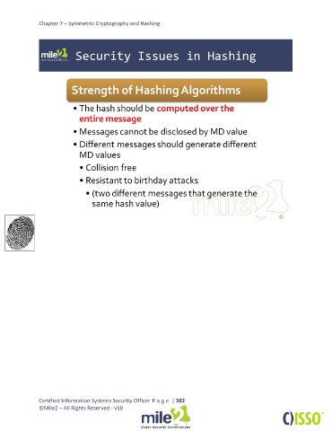 Chapter 7 – Symmetric Cryptography and Hashing Certified Information Systems Security Officer P a g e | 382 ©Mile2 – All Rights Reserved - v18
