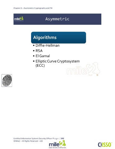 Chapter 8 – Asymmetric Cryptography and PKI Certified Information Systems Security Officer P a g e | 392 ©Mile2 – All Rights Reserved - v18