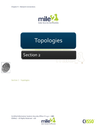 Chapter 9 – Network Connections Section 2 - Topologies Certified Information Systems Security Officer P a g e | 445 ©Mile2 – All Rights Reserved - v18