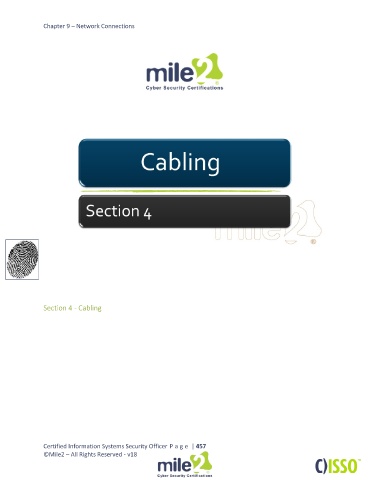 Chapter 9 – Network Connections Section 4 - Cabling Certified Information Systems Security Officer P a g e | 457 ©Mile2 – All Rights Reserved - v18