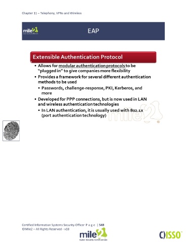 Chapter 11 – Telephony, VPNs and Wireless Certified Information Systems Security Officer P a g e | 548 ©Mile2 – All Rights Reserved - v18