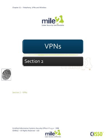 Chapter 11 – Telephony, VPNs and Wireless Section 2 - VPNs Certified Information Systems Security Officer P a g e | 551 ©Mile2 – All Rights Reserved - v18