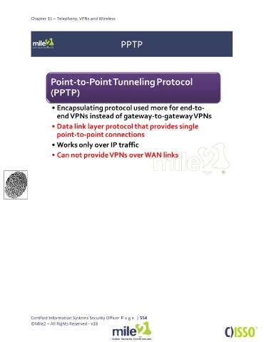 Chapter 11 – Telephony, VPNs and Wireless Certified Information Systems Security Officer P a g e | 554 ©Mile2 – All Rights Reserved - v18