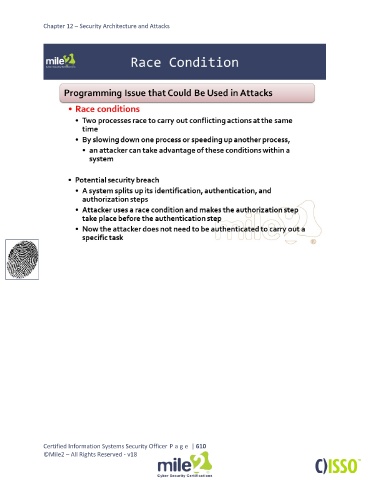 Chapter 12 – Security Architecture and Attacks Certified Information Systems Security Officer P a g e | 610 ©Mile2 – All Rights Reserved - v18