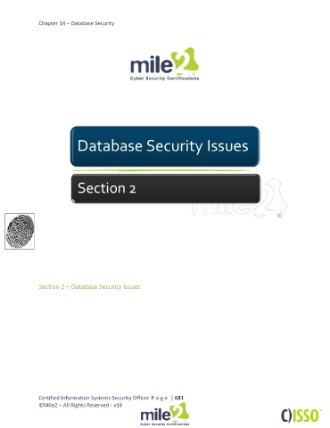 Chapter 14 – Database Security Section 2 – Database Security Issues Certified Information Systems Security Officer P a g e | 681 ©Mile2 – All Rights Reserved - v18