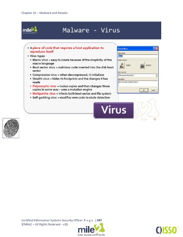 Chapter 15 – Malware and Attacks Certified Information Systems Security Officer P a g e | 697 ©Mile2 – All Rights Reserved - v18