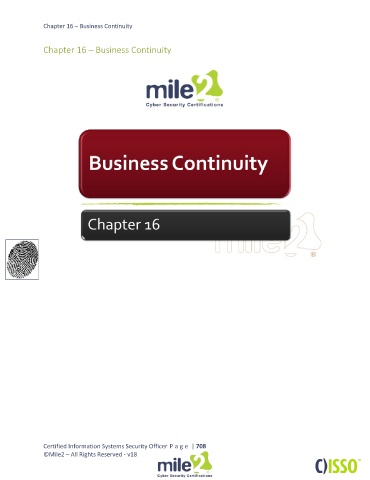 Chapter 16 – Business Continuity Chapter 16 – Business Continuity Certified Information Systems Security Officer P a g e | 708 ©Mile2 – All Rights Reserved - v18