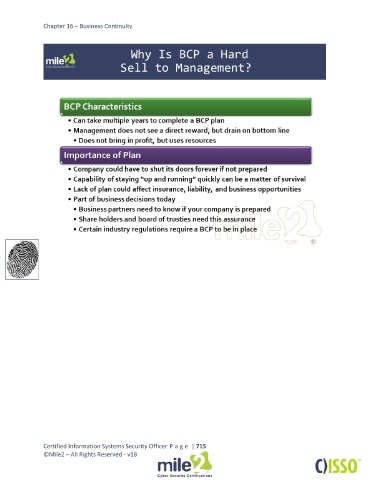 Chapter 16 – Business Continuity Certified Information Systems Security Officer P a g e | 715 ©Mile2 – All Rights Reserved - v18