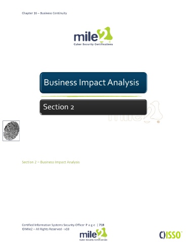 Chapter 16 – Business Continuity Section 2 – Business Impact Analysis Certified Information Systems Security Officer P a g e | 718 ©Mile2 – All Rights Reserved - v18