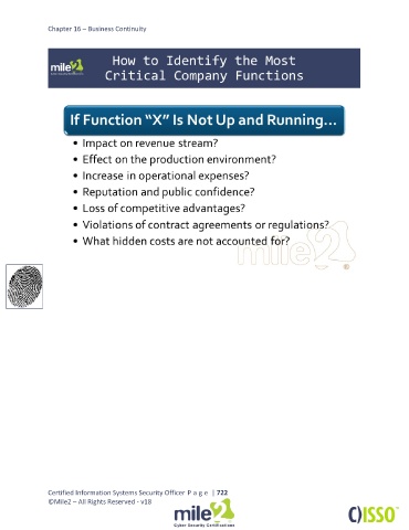 Chapter 16 – Business Continuity Certified Information Systems Security Officer P a g e | 722 ©Mile2 – All Rights Reserved - v18