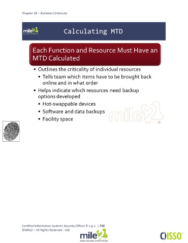 Chapter 16 – Business Continuity Certified Information Systems Security Officer P a g e | 726 ©Mile2 – All Rights Reserved - v18