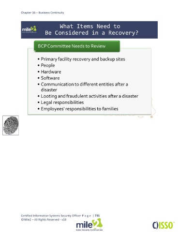 Chapter 16 – Business Continuity Certified Information Systems Security Officer P a g e | 731 ©Mile2 – All Rights Reserved - v18