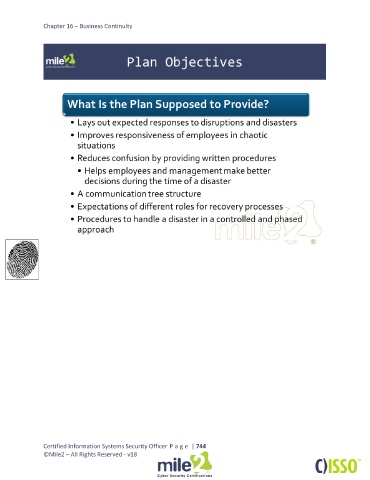 Chapter 16 – Business Continuity Certified Information Systems Security Officer P a g e | 744 ©Mile2 – All Rights Reserved - v18