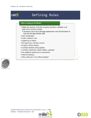 Chapter 16 – Business Continuity Certified Information Systems Security Officer P a g e | 746 ©Mile2 – All Rights Reserved - v18