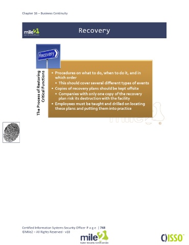 Chapter 16 – Business Continuity Certified Information Systems Security Officer P a g e | 748 ©Mile2 – All Rights Reserved - v18