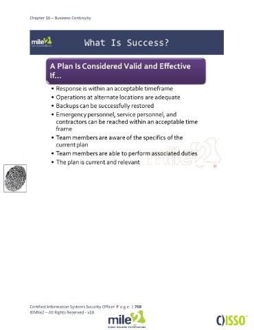 Chapter 16 – Business Continuity Certified Information Systems Security Officer P a g e | 768 ©Mile2 – All Rights Reserved - v18