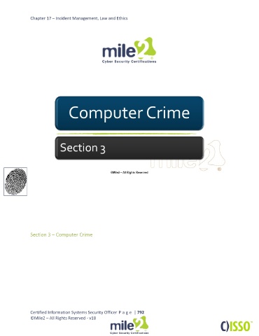 Chapter 17 – Incident Management, Law and Ethics Section 3 – Computer Crime Certified Information Systems Security Officer P a g e | 792 ©Mile2 – All Rights Reserved - v18