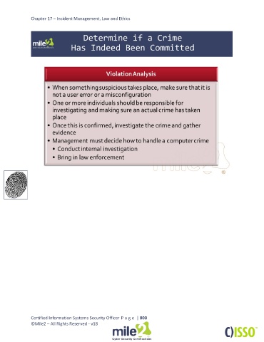 Chapter 17 – Incident Management, Law and Ethics Certified Information Systems Security Officer P a g e | 800 ©Mile2 – All Rights Reserved - v18