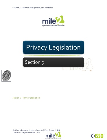 Chapter 17 – Incident Management, Law and Ethics Section 5 – Privacy Legislation Certified Information Systems Security Officer P a g e | 816 ©Mile2 – All Rights Reserved - v18