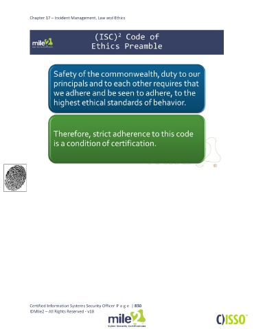 Chapter 17 – Incident Management, Law and Ethics Certified Information Systems Security Officer P a g e | 830 ©Mile2 – All Rights Reserved - v18