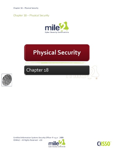Chapter 18 – Physical Security Chapter 18 – Physical Security Certified Information Systems Security Officer P a g e | 835 ©Mile2 – All Rights Reserved - v18