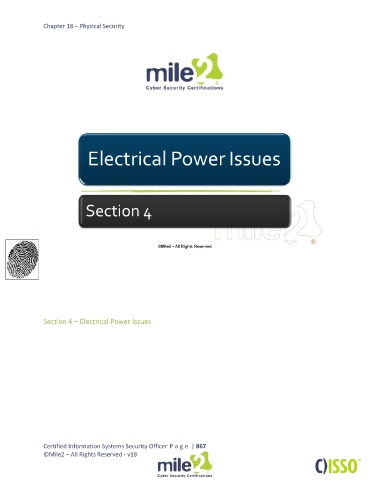 Chapter 18 – Physical Security Section 4 – Electrical Power Issues Certified Information Systems Security Officer P a g e | 867 ©Mile2 – All Rights Reserved - v18