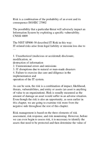 Risk is a combination of the probability of an event and its