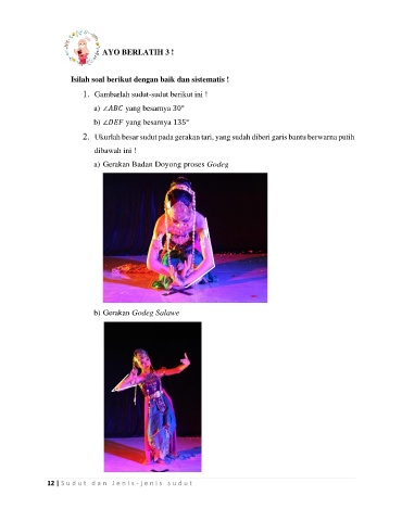 2.  Ukurlah besar sudut pada gerakan tari, yang sudah diberi garis bantu berwarna putih