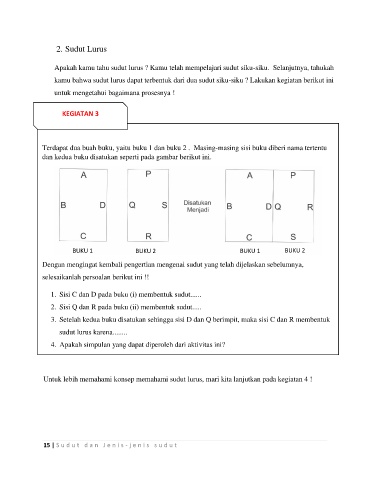 kamu bahwa sudut lurus dapat terbentuk dari dua sudut siku-siku ? Lakukan kegiatan berikut ini