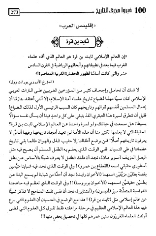 عن عالمِ إسلامي مثل (ثابت بن قرة ) ! هذا مع الوضع في الحسبان أن العلوم التي برع