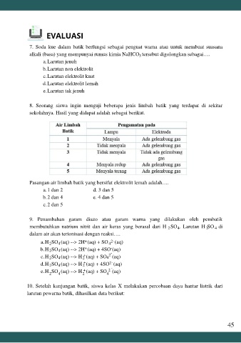 8. Seorang siswa ingin menguji beberapa jenis limbah batik yang terdapat di sekitar
