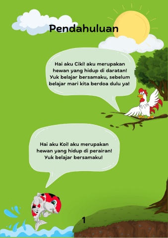 Pendahuluan Hai aku Ciki! aku merupakan hewan yang hidup di daratan! Yuk belajar bersamaku, sebelum belajar mari kita berdoa dulu ya! Hai aku Koi! aku merupakan hewan yang hidup di perairan! Yuk belajar bersamaku! 1