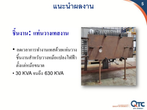 แนะนาผลงาน 5 ิ ้ ่ ชนงาน: แทนวางเทสงาน • ลดเวลำกำรท ำงำนเทสด้วยแท่นวำง ้ ั ิ ช้นงำนส ำหรบวำงหม้อแปลงไฟฟำ ตั้งแต่หม้อขนำด ึ • 30 KVA จนถง 630 KVA