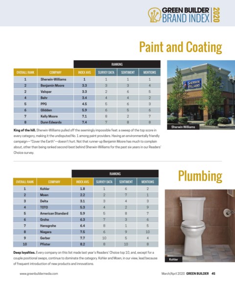 data were weighted and averaged—but not due to lack of brand recognition, and not among building pros. People King of the hill. Sherwin-Williams pulled off the seemingly impossible feat: a sweep of the top score in