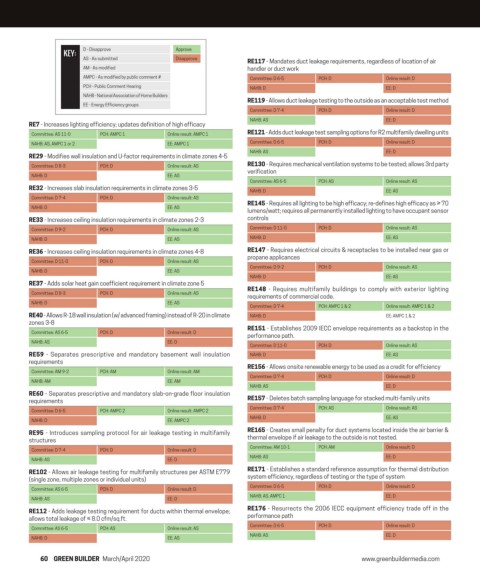RE119 - Allows duct leakage testing to the outside as an acceptable test method RE184 - Limits amount of total energy use reduction from onsite renewable to